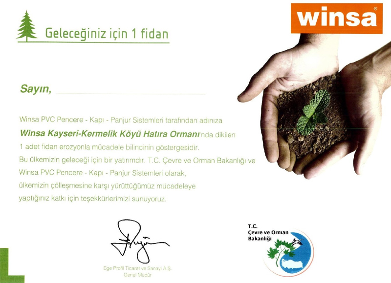 Çevre bilincimizin göstergelerinden biri de Kayseri Kermelik Köyün'de bulunan Winsa Hatıra Ormanımızdır.